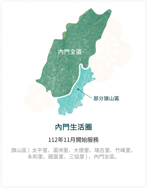 高雄市旗美地區雖占全市七成以上的土地,但人口僅約5%,地廣人稀加上地形限制,交通相對不便。為改善偏鄉交通困境,高雄市政府陸續於美濃、杉林、六龜、內門、甲仙及茂林等地區,導入彈性預約交通服務--「幸福共享高雄GO」,整合在地多元的車輛,透過科技化預約媒合管理平台,協助民眾預約乘車,補足公共運輸服務不足的地區,守護偏鄉民眾們安心回家的最後一哩路。媒合中心